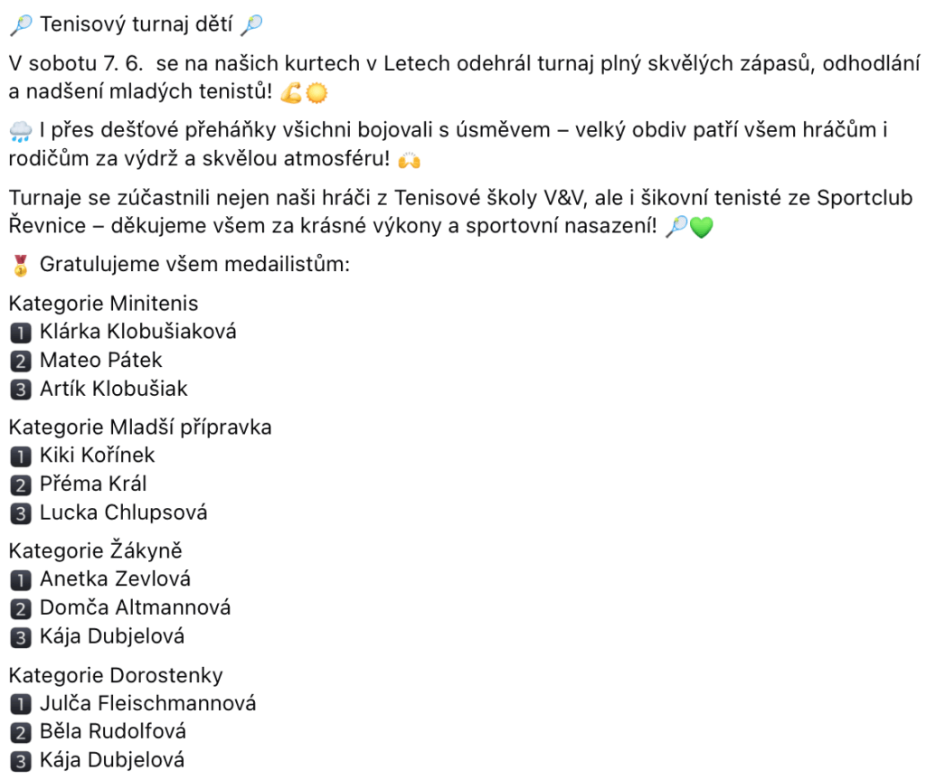 Ohlédnutí za klubovým turnajem 7.6.2025